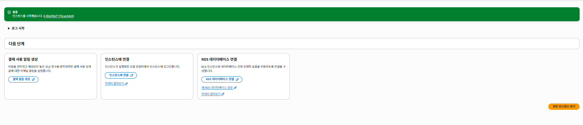 인스턴스 생성을 클릭하면 생성이 완료된다., 옆에 EC2 대시보드 탭에 들어가보면,