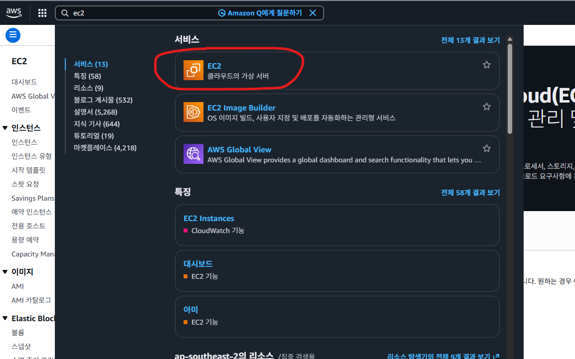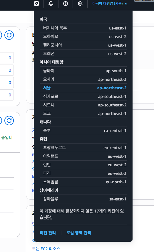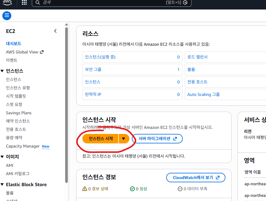 이때, 주의할 부부은 제일 저음 선택한 region 지역에 따라서 인스턴스 정보를 확인 가능하기 때문에 내가 선택한 region을 꼭 반드시 확인할것 !