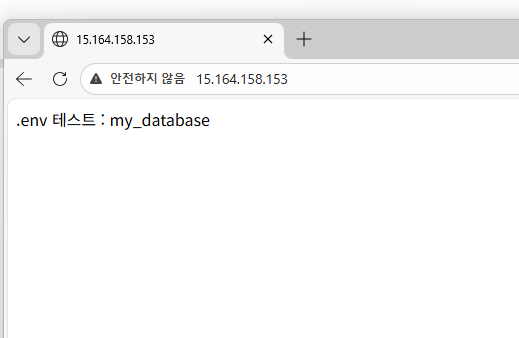 그러면 이런식으로 실행 성공한 화면이 나오니까 이제 우리가 아까 연결한 탄력자IP 주소를 입력해서 브라우저에서 확인해보면