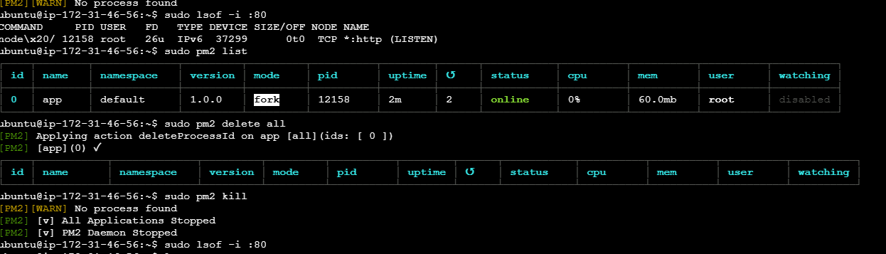$ sudo pm2 kill