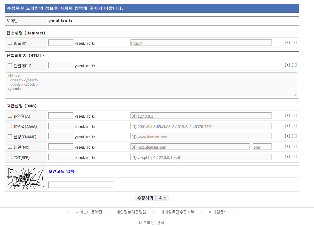 한글 무료 도메인 내도메인.한국, 웹포워딩, DNS 등 무료 도메인 기능 제공