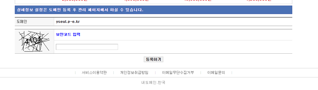 사용하기 원하는 도메인을 클릭해서 보안코드를 입력하고 등록해주면