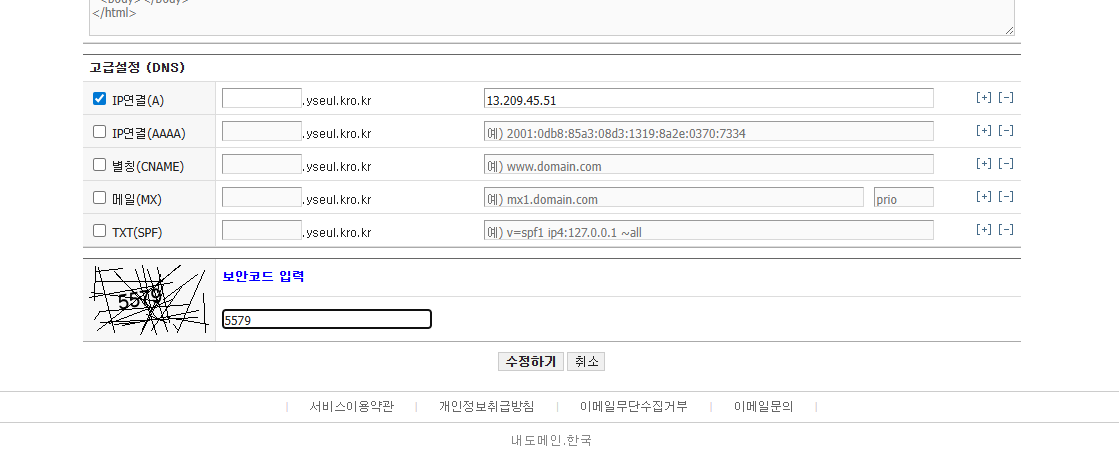 우선, 내도메인한국 이라는 아래 사이트에 들어가서