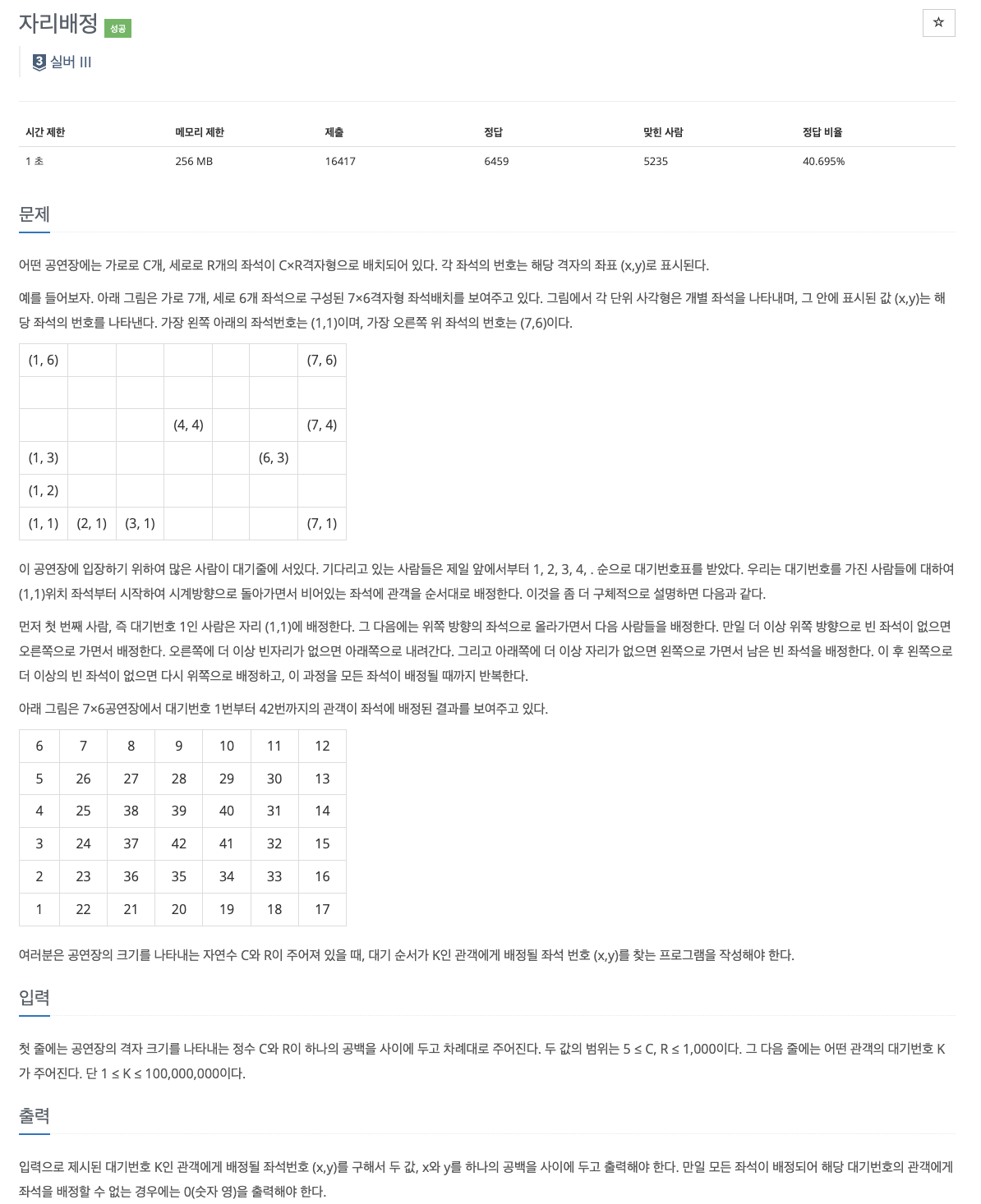 [JAVA] 백준 좌석 10157_배정 시뮬레이션 본문