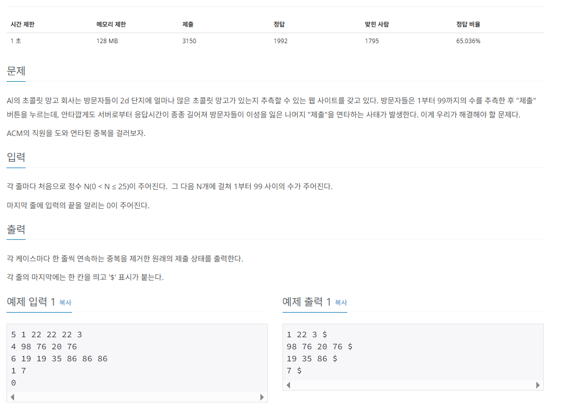1-99까지 숫자를 추측해서 전송하는 과정에서 전송을 연속해서 눌러 중복된 값을 전송된 경우를 제거하는 문제이다.