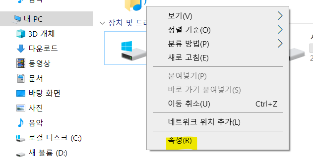 👨🏫 내 pc - 마우스 오른쪽 클릭 - 속성 메뉴 선택